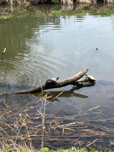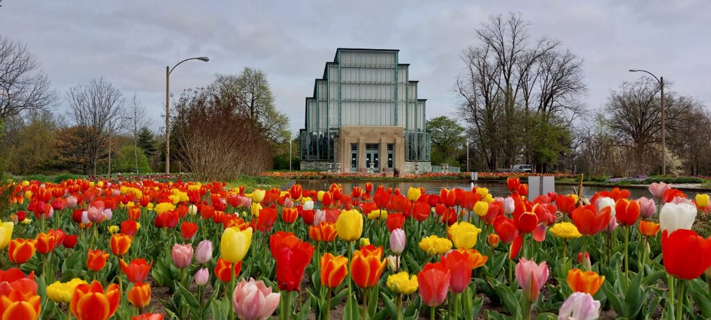 “The beauty of travelling west is that it’s never a problem getting out of bed in the morning – though 5am is considered by some a little too early to wake up! – but at least it means everyone is up and ready to explore early on in the day. The earlier risers had been up and about, jogging or walking round the city or the huge Forest Park (four times the size of Central Park apparently) near our hotel before a group of six of us went for an absolutely delicious and wholesome brunch. We then went for a walk through the park, admiring some of the stunning features of late spring, including some very colourful tulips and extraordinarily bright pink blossoms. We were also fascinated by a lovely bird with a red breast which turned out to be an American robin — it looks nothing like its British counterpart — and spotted some adorable terrapins sunbathing.
