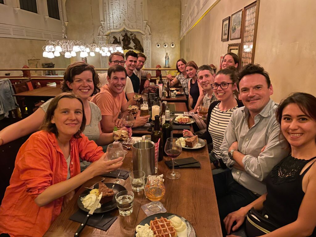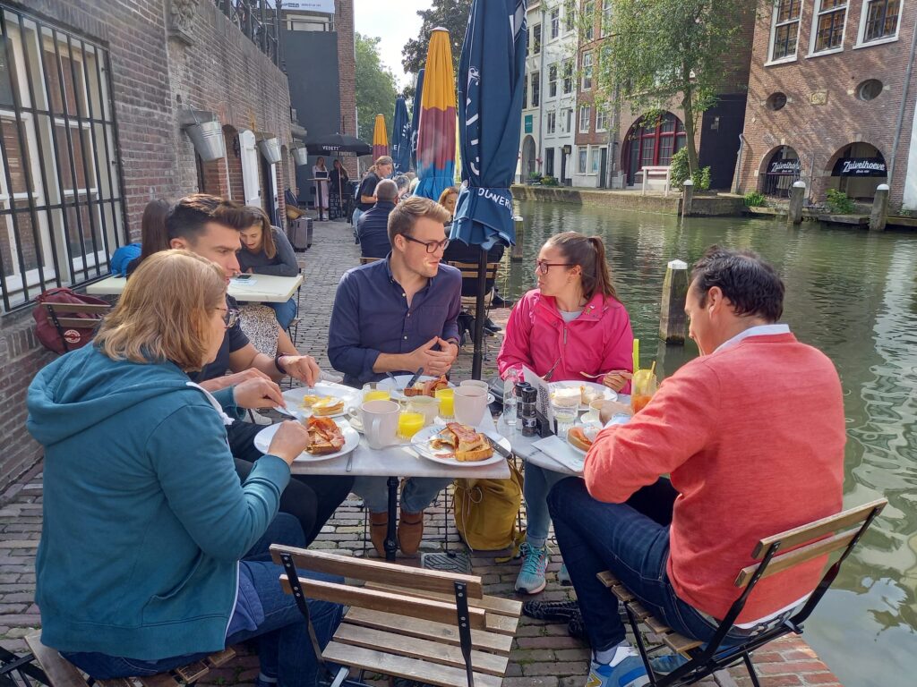 “The advance party left early for a flight back to Heathrow, but some of us stayed longer for a leisurely brunch by the side of the canal in the city centre before embarking back on the train journey to St Pancras, sustained by the wonderful cakes which old friends from Dartington were kind enough to send to us to celebrate our return to Utrecht.