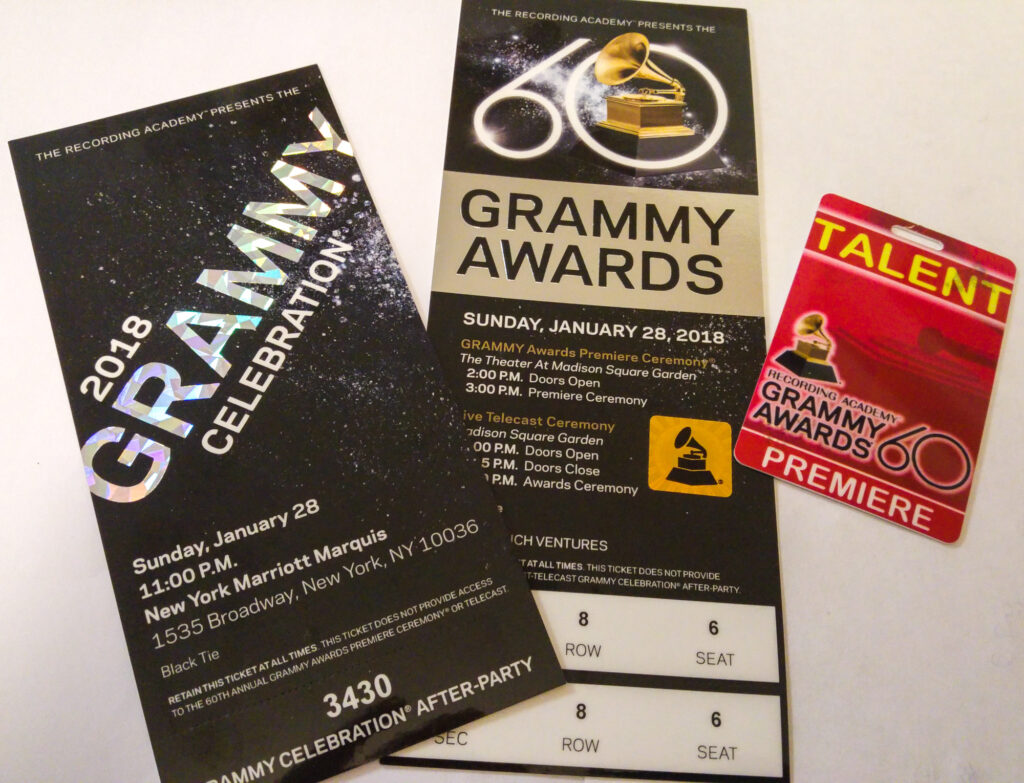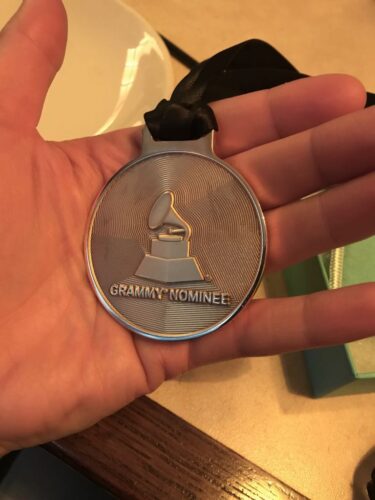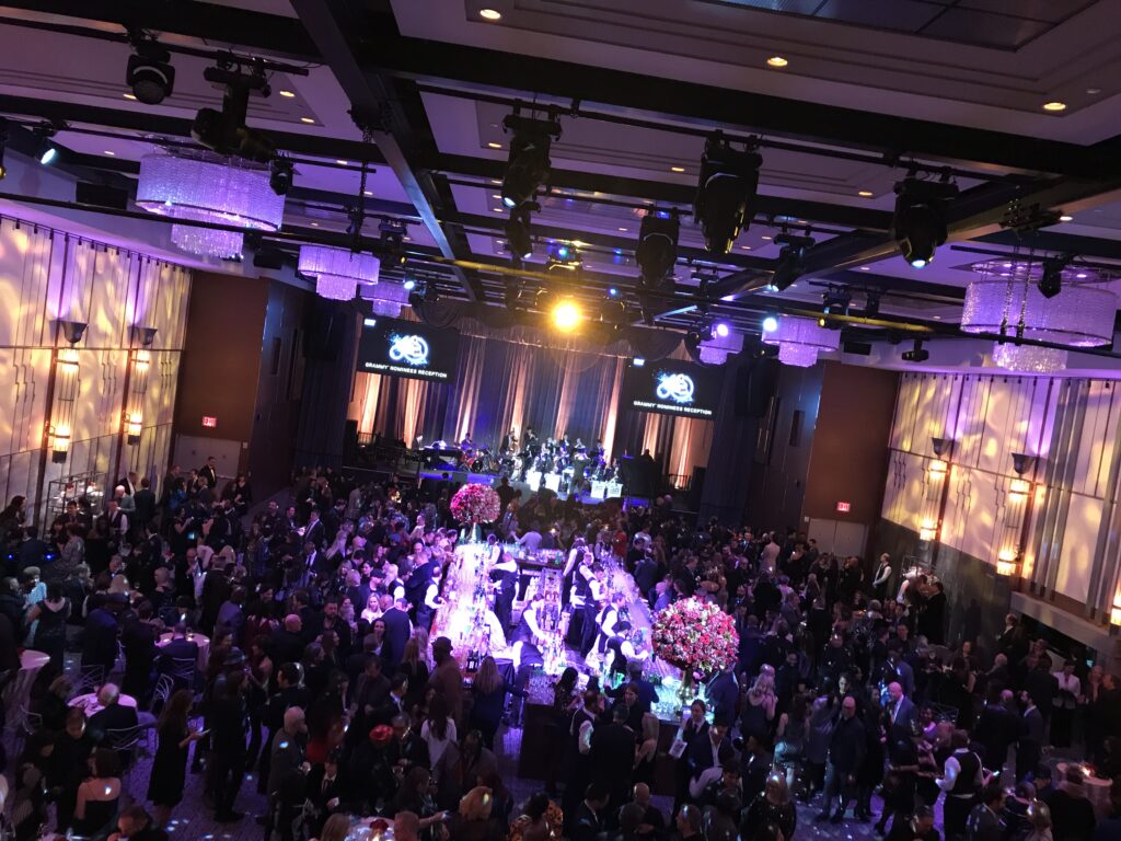 The Reception was crammed with all the many hopefuls from the 84 categories of awards and there was a real buzz in the room. There was a wonderful jazz band made up of 18 talented student musicians culled from across America, who had only gathered together for the first time a few days before, and there were yet MORE gifts to collect at this event! First, an impressive medal made of bronze imprinted with the words “GRAMMY Nominee” and then a special lapel pin for each member of the group courtesy of Tiffany & Co!