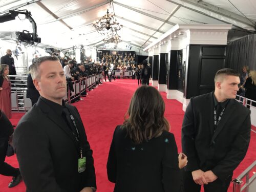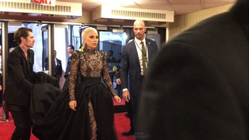 First stop, the Red Carpet! We were given the full superstar treatment, paraded in front of groups of photographers who dutifully snapped away, but we got the impression they were slightly more interested in the next customer down the conveyor belt – Lady Gaga!!